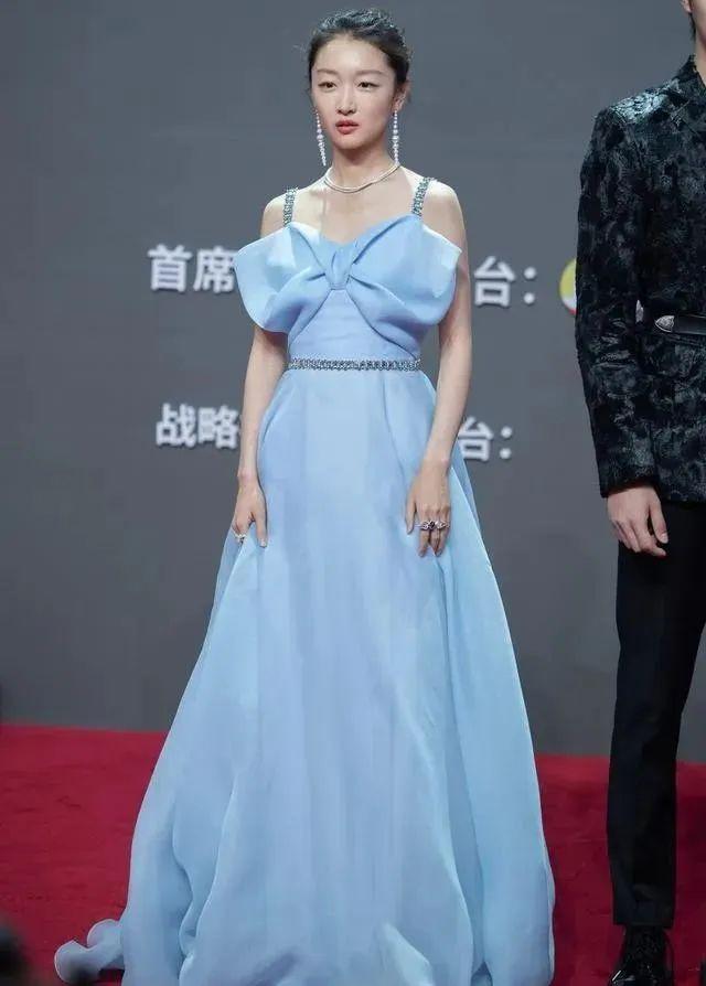 其实周冬雨也穿过蓝色系的礼服