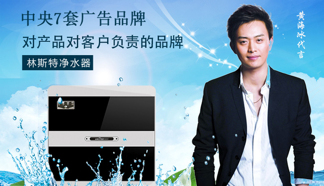 3、林斯特净水器,黄海冰代言。2016年7月27日,林斯特净水器与著名影视巨星“古装男神”黄海冰先生成功签约,作为“母亲水窖”的爱心大使,黄海冰欣然接受林斯特的邀约也正是因为与林斯特有一致的环保理念,相信彼此的合作能唤醒广大市民的健康饮水意识,同时和大家一起参与水资源保护活动,为保护水资源贡献自己的一份力量。与林斯特净水器的合作,无疑是对保护水资源活动的大力支持。