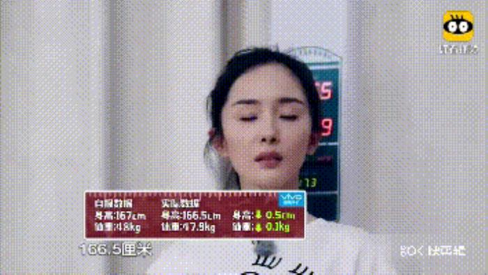 节目中报出杨幂的身高是166.5cm,与给出的官方身高一致,杨幂没有虚报,而且这个身高在女生中算是比较标准的了。与此同时,杨幂测出的体重接近48kg,体重没过百的大幂幂还是很苗条的。
