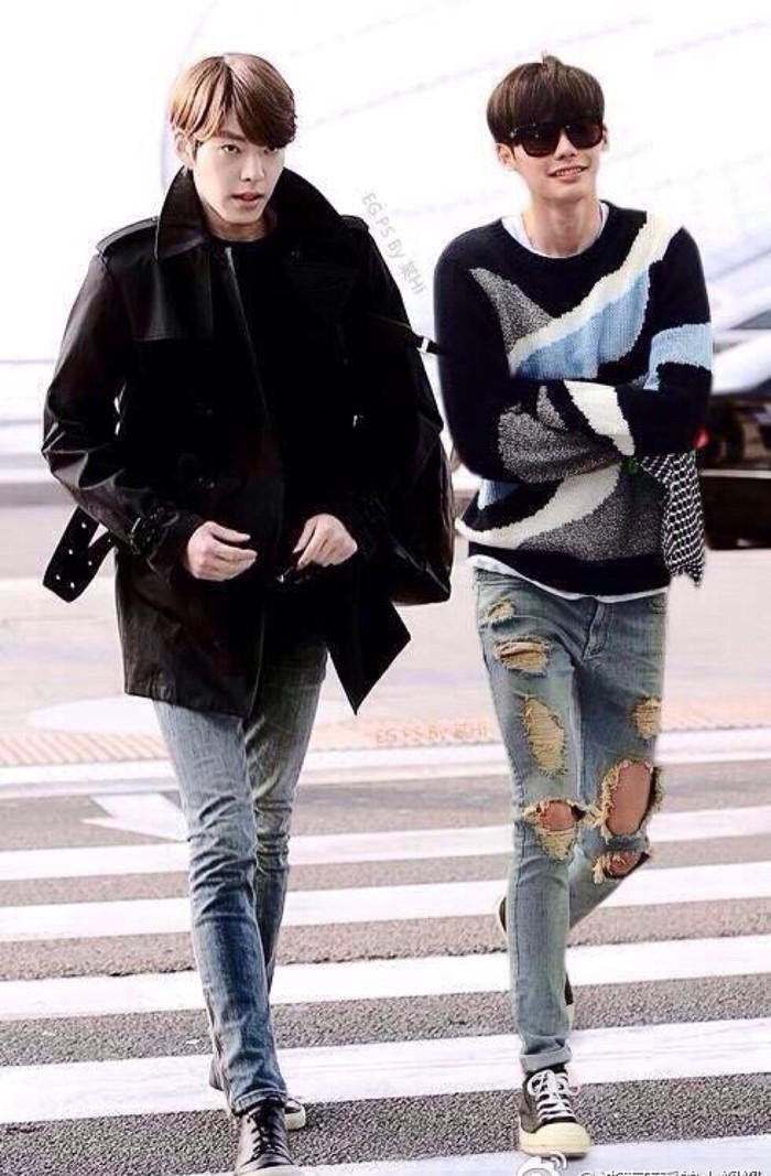 金宇彬比李钟硕高2厘米,但是单说腿长,李钟硕似乎还要略胜一筹……