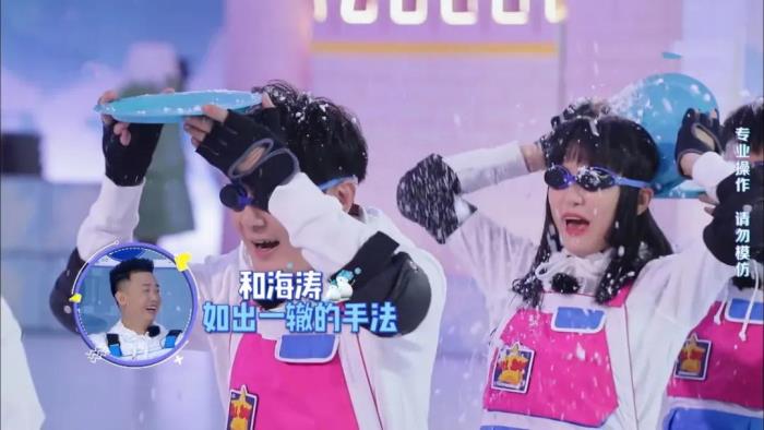 然而到这里,海涛的“实力”才露了尖尖角。只见他一边喊着“频率不要断”“节奏不要停”,一边越过希林,把盘子里的雪都洒到了何老师身上。