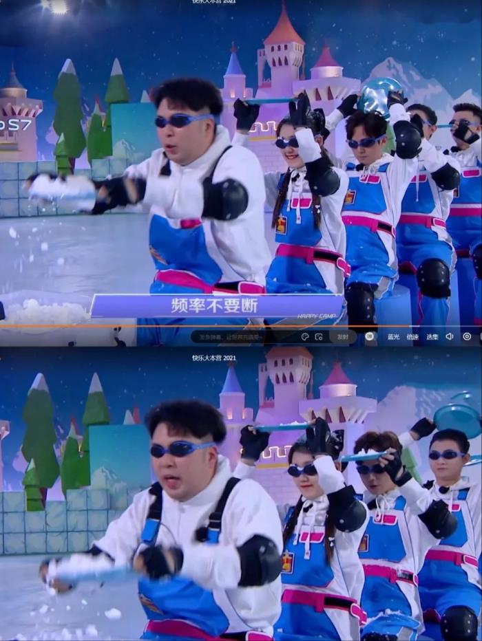 由于太过卖力,吴昕甚至把盘子都给搞碎了。雪在屏幕上飞扬,有一种下雪的感觉。