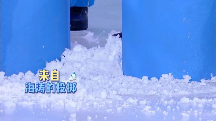 让我们再来看看另一位“黑洞”选手的表现。不愧是海涛的好姐姐,吴昕打出了和海涛如出一辙的手法——隔着第二棒将雪传输到第三棒甚至更后面。