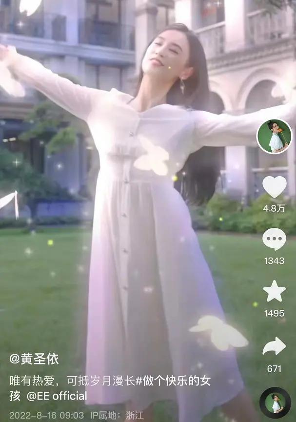 值得一提的是,从 8 月中旬起,黄圣依分享的很多短视频中,都艾特了某服装品牌,为该品牌打 call。