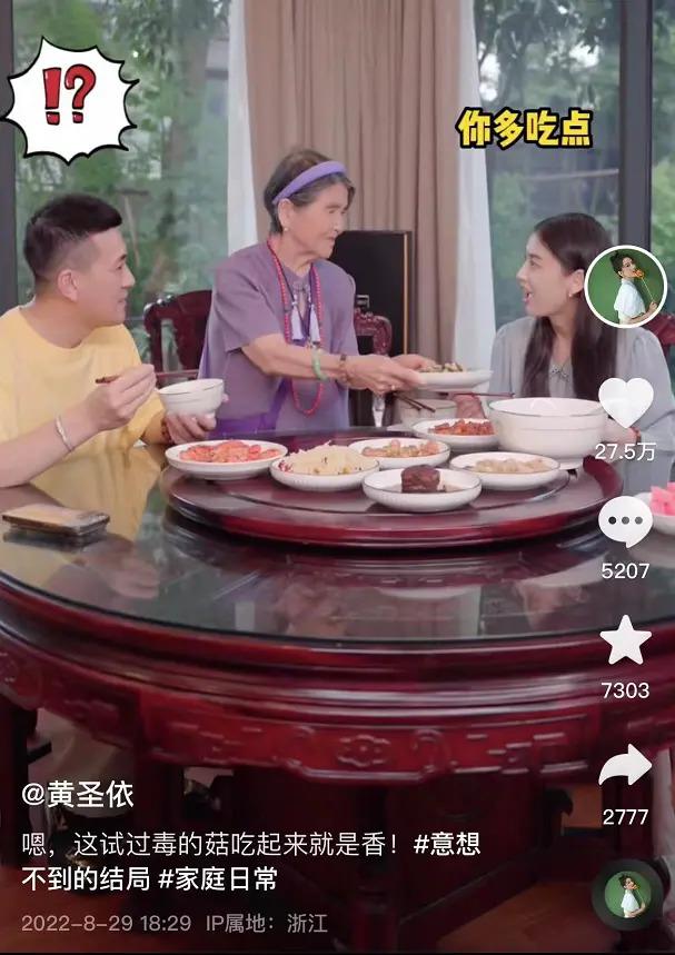 事实上,就在七夕之后,黄圣依和杨子仍然一起直播带货或者是拍小视频,恩爱指数爆表。8 月 29 日,黄圣依分享的短视频中,和杨子以及婆婆同框亮相,所附词条是 " 家庭日常 ",而以往分享这类的短视频所附词条都是 " 夫妻日常 "