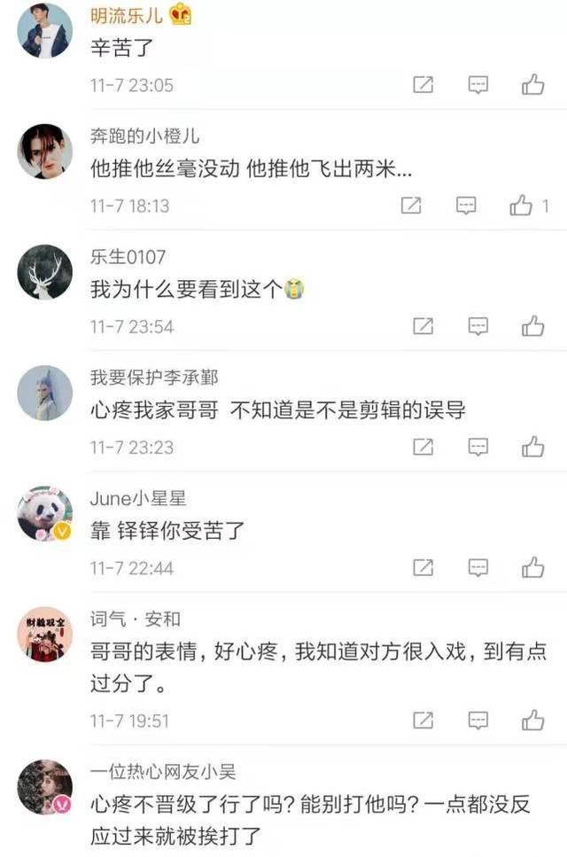 网友纷纷留言:“演员这么辛苦吗?感觉汪铎有点惨。”可是如果没有演员的这种牺牲,我们也看不到如此精彩的表演,正是通过节目中的镜头,我们更能对演员为表演的执着所共情。