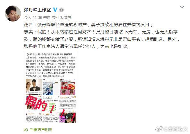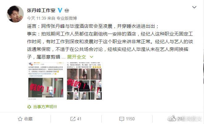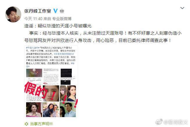 张丹峰工作室发声明澄清“出轨经纪人毕滢”传言
