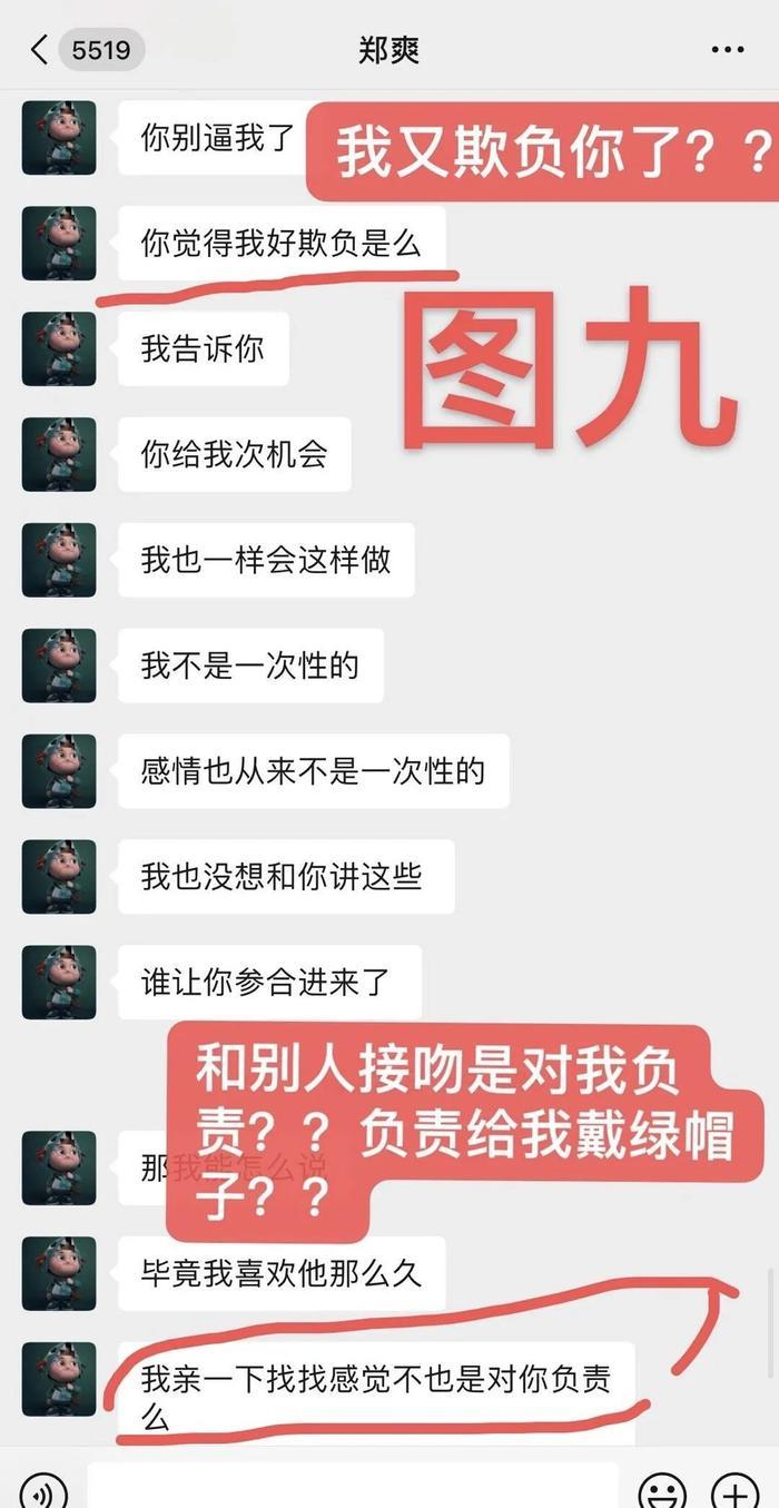 除此之外,张恒所晒的聊天记录截图中,爆料郑爽与他在一起的时候,还疑似有了劈腿的行为。她不仅亲了前男友,而且大言不惭道:“我就是试试还爱不爱他啊。”
