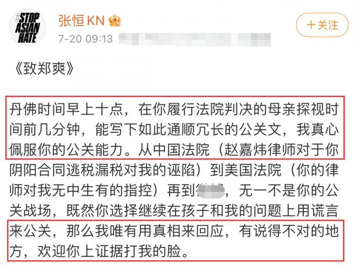 7月20日上午,张恒在社交平台上更新了一则动态,再次发文回击前女友,一封《致郑爽》的长文,立马引发网友热议,而他的文中信息量也是非常大的。