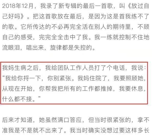 而且这次吴莫愁再次出山,采访中第一次谈到要退圈的事,并没有被张碧晨封杀,而是因为母亲得病住院治疗,所以她的下一步计划就是为了照顾她,让她在采访中第一次谈到要退圈的事,所以她无法找到一个合适的方法来解决问题,所以她的下落落到了她身上。