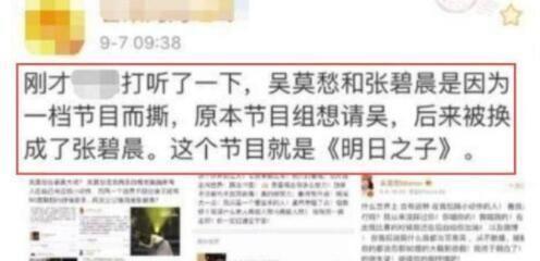 之后,曾有曝料二人因为一档综艺节目而反目成仇,本来是想请吴莫愁,却被张碧晨抢下。而且在吴莫愁的博闻中还提到,被张碧晨多次闲谈,暗喻自己要把她当姐妹,而张碧晨却卖掉了她,但过了张碧晨个人工作室又将她卖掉了,但之后张碧晨个人工作室回应说别人心怀不轨的话!