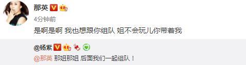 那英近日成为了综艺节目热门的嘉宾,此前杨紫在社交平台喊话那英,高智商回应两人在综艺中“结怨”的风波,杨紫配文称:“那姐那姐,后面我们一起组队!”,随后那英回复:“是啊是啊,我也想跟你组队,姐不会玩儿你带着我”,两人如此亲切互动,亲自回应了不和传闻,打破了外界的疑虑。