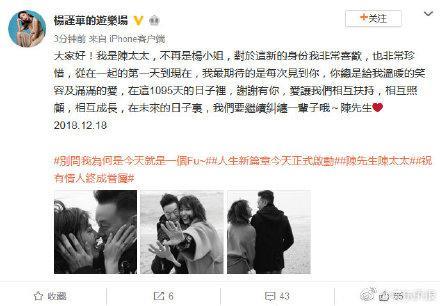 41岁杨谨华登记结婚 败犬女王交往2年修成正果