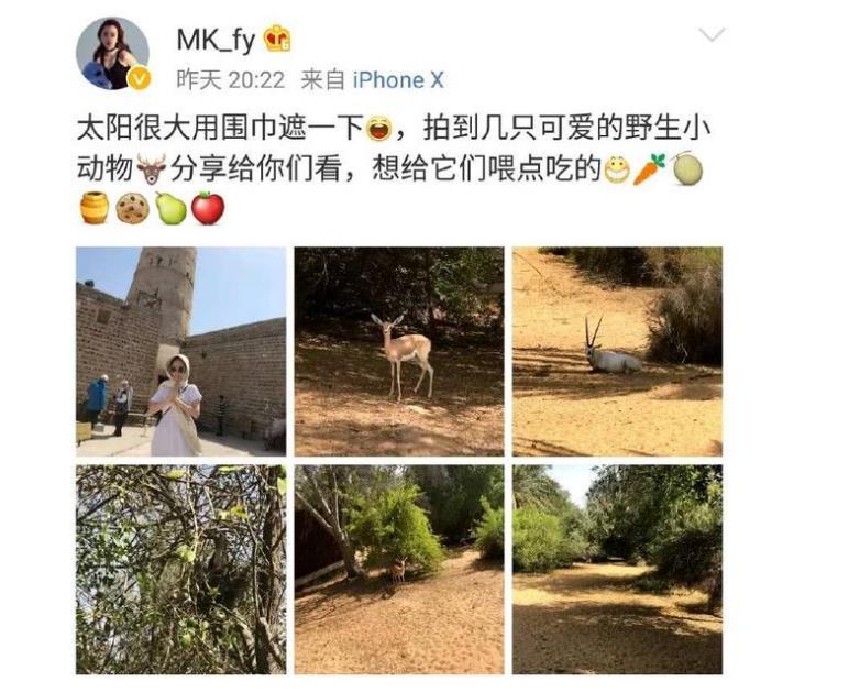 昨晚,方媛也是很兴奋的晒出了自己在外地游玩,亲近大自然看各种动物的照片,图片中,方媛穿的衣服正是网友偶遇时的一身衣服。