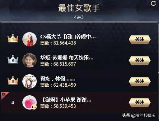 女歌手组今年的实力算是整体最强的,拿下前三甲的杨大爷、苏姗姗、微凉三位老牌电母,无一不都是一直有神豪支持的电母。
