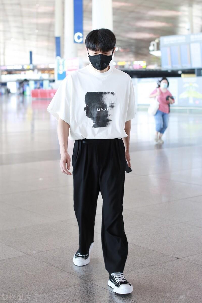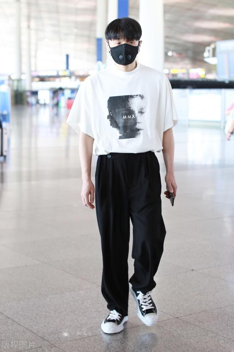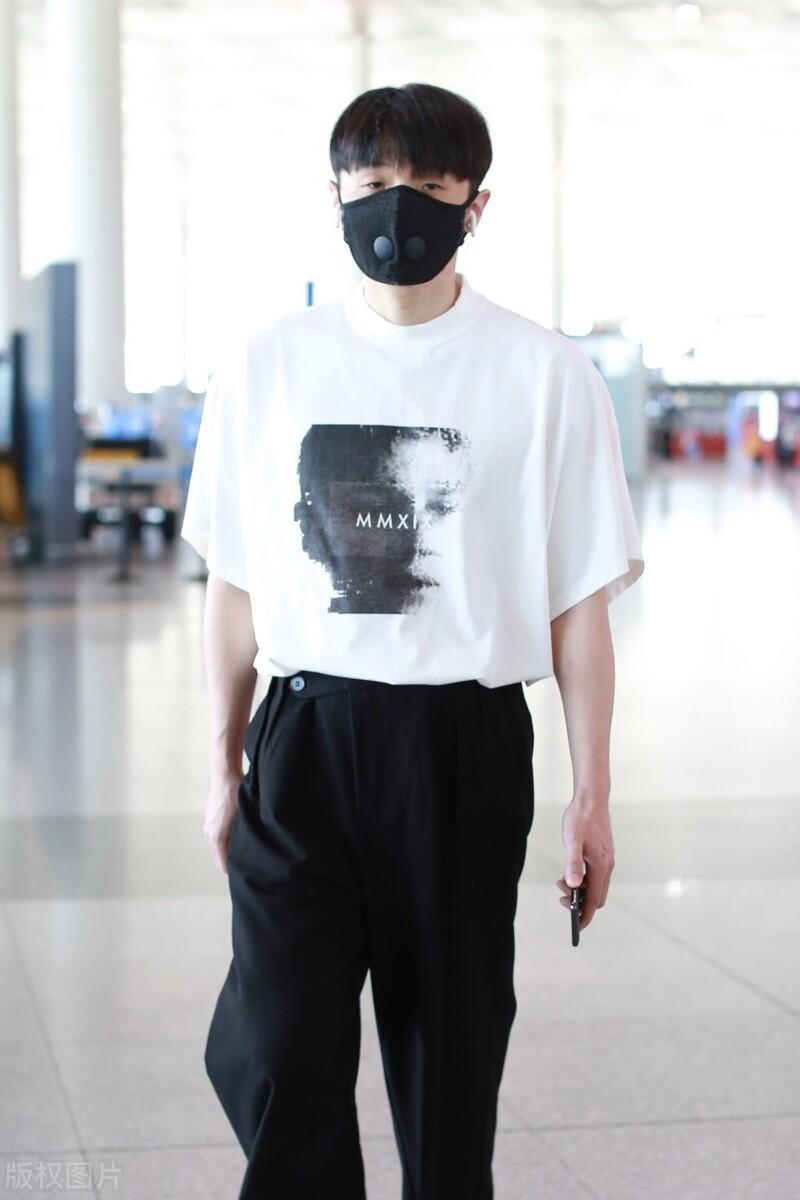 近期李荣浩现身时同样选择的T恤来搭配,虽然选择的款式不同,但是搭配方式可以说是几乎不变,当天其选择的是人像印花款式,使搭配看起来颇具文艺气息,而白色作为基调的T恤也使得造型爽朗不沉闷;