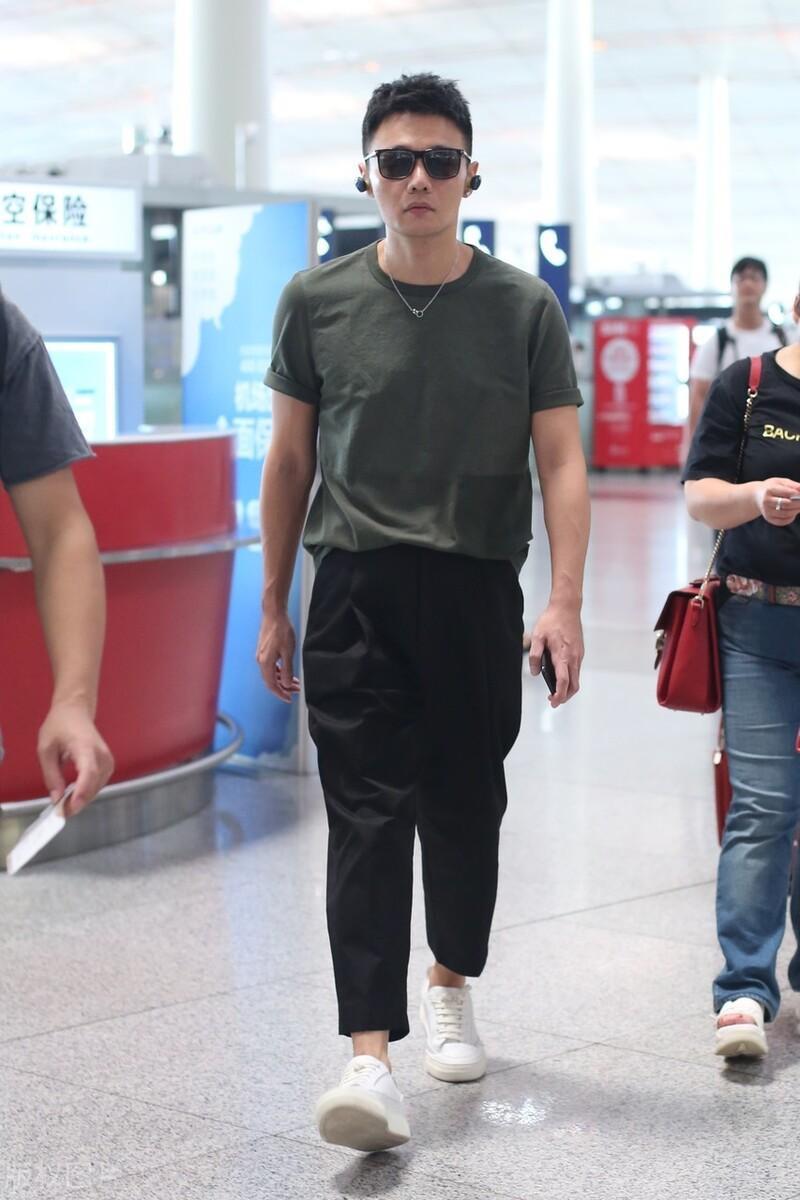 反观最后的这一身,同样的搭配套路,这回李荣浩则是将T恤换成暗沉的墨绿款式,裤子一样为九分西裤款式,不过鞋子换成了清新减龄的小白鞋,用以提亮搭配氛围;