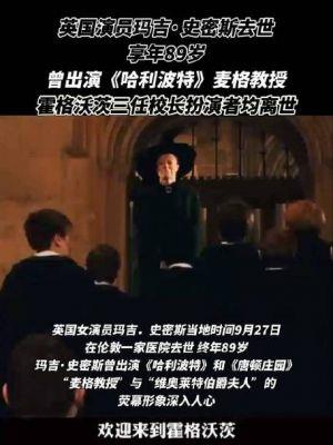 《哈利波特》麦格教授扮演者玛吉·史密斯去世《哈利波特》官方深表哀悼