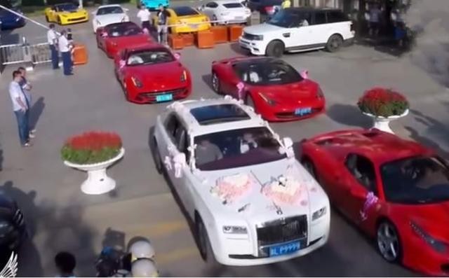 隋宏洋出动了十几年百万豪车前来接亲,