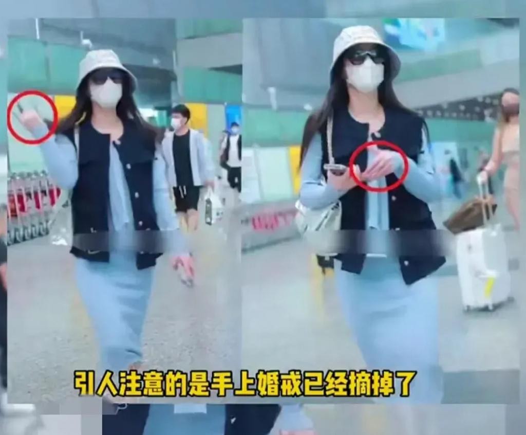 前几天黄圣依裹得严严实实现身机场被偶遇,也被网友捕捉到,当时她手上的婚戒就已经摘掉了。
