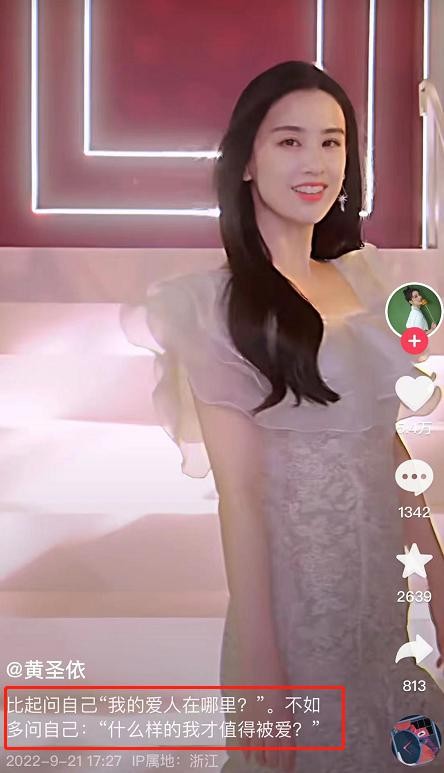 黄圣依的文案大家品品:比起问自己 " 我的爱人在哪里?" 不如多问自己 " 什么样的我才值得被爱?"(谁能不多想?