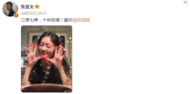到已婚组的朱亚文沈佳妮晒照庆祝结婚十周年,这对低调恩爱夫妻甜到谁了我不说 55555。