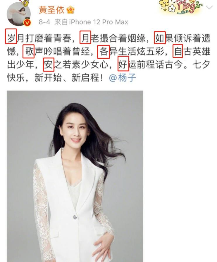 只不过,两人各自暗戳戳发的这两首藏头诗,好几天之后才被吃瓜群众 get 到,竟然被怀疑是离婚官宣文案???啊这?不是吧?不是吧?不是真离了吧?