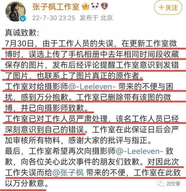因为质疑太多了,张子枫工作室不得不随后发布道歉,表示这是工作人员的运营失误。
