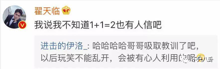【不知知网翟天临】引起大家的质疑后,翟天临本人的回应是:开玩笑而已,他还反问大家,"是不是我说不知道1+1=2也会有人信?"