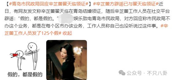 对此,青岛市民政局亲自出面发声,表示市民政局不办这个业务,都是在每个区市办该业务的,目前并没有没听说过辛芷蕾和翟天临领证这件事。