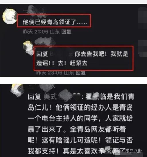 昨天,有消息称这俩已经在青岛(翟天临是山东青岛人)领证结婚啦!爆料人还称两人的领证经办人是他的同学↓