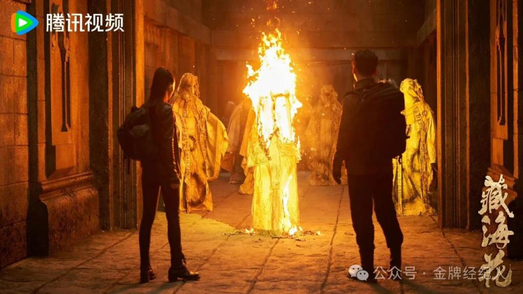 不管是实景还是棚拍,《藏海花》的拍摄都付出了超出以往的心力。至于为什么这么难还要坚持,韩青导演的想法是,尤其是这种冒险题材作品,当节奏上去,制造氛围时,镜头素材量就非常重要。多拍一个镜头,多拍一个角度,呈现出来是不一样的。观众可能并不能从技术层面看出来多大差距,但能从最终呈现的氛围和质感上看到制作 " 用心 ",那么这一切就是值得的。