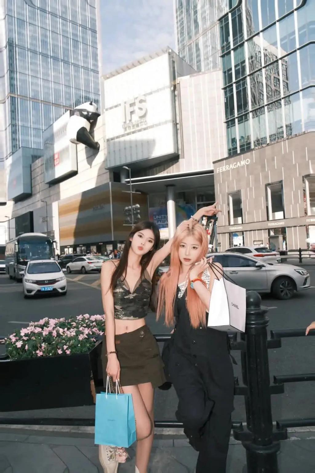 黄一鸣喜欢成都,大学毕业后,经常来成都旅游观光。图为黄一鸣与一位闺蜜逛成都太古里。