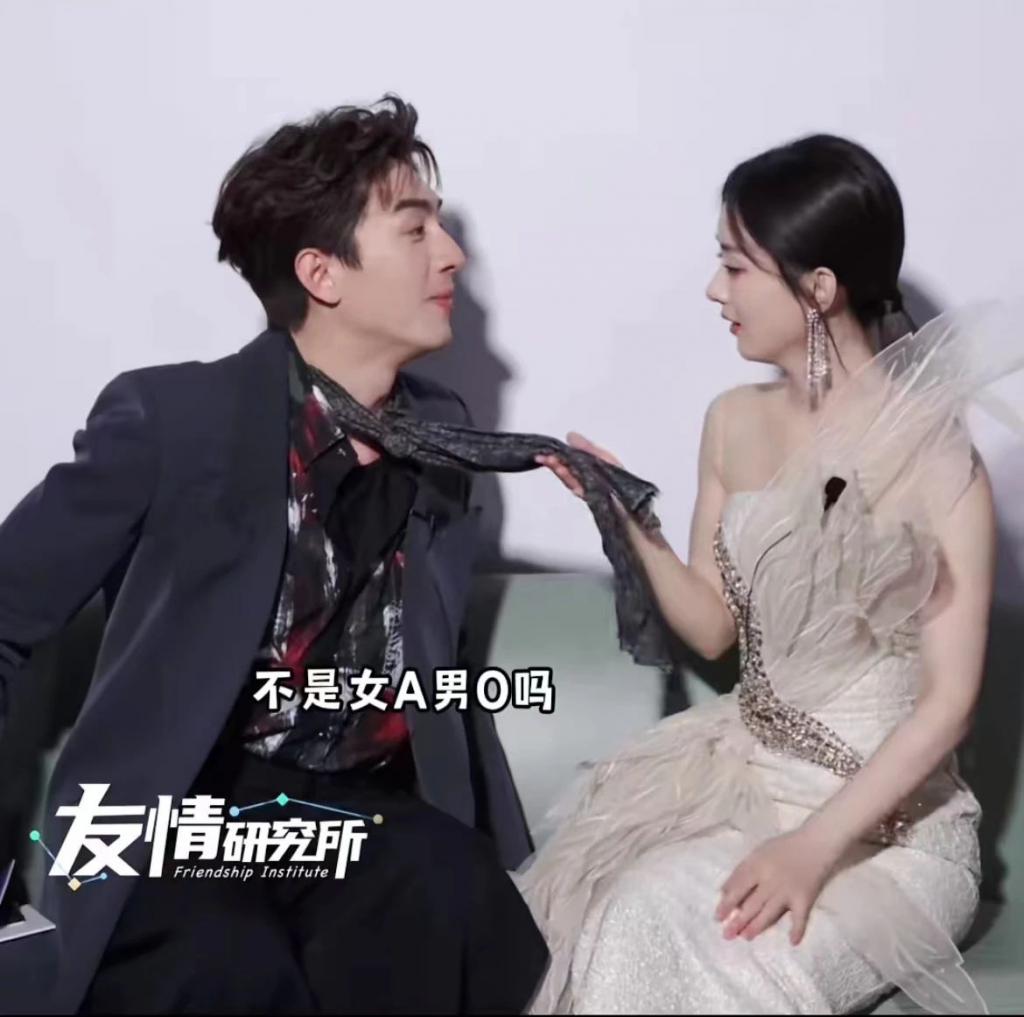 沈璃水中捞行止 " 美救英雄 ",行止给沈璃缝补衣服、做饭,还对着沈璃美滋滋地来上一句 " 你阳我阴,相处愉快 ",剧外也同样安排了赵丽颖扯林更新领带的互动环节,将 " 女 A 男 O" 一走到底。