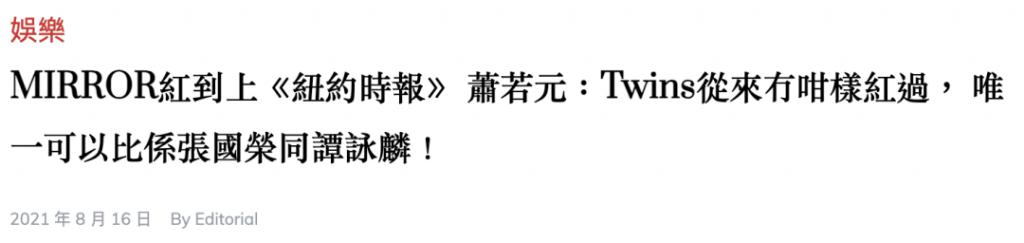 "Twins 都没有这样红过, 只有张国荣、谭咏麟才能和他们比肩。"
