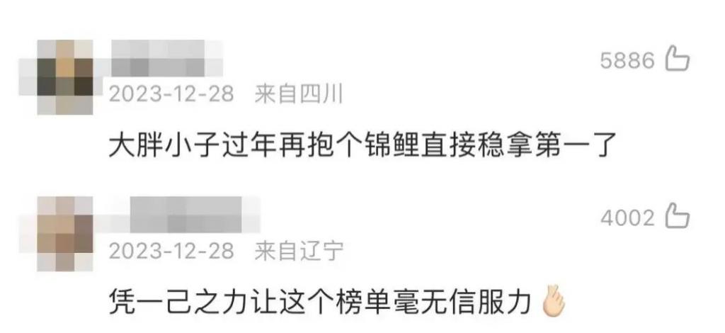 " 大胖小子过年再抱个锦鲤就直接稳拿第一了 "。
