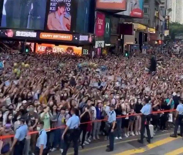 他过生日那天,应援现场人山人海,铜锣湾秒变 " 姜涛湾 "。