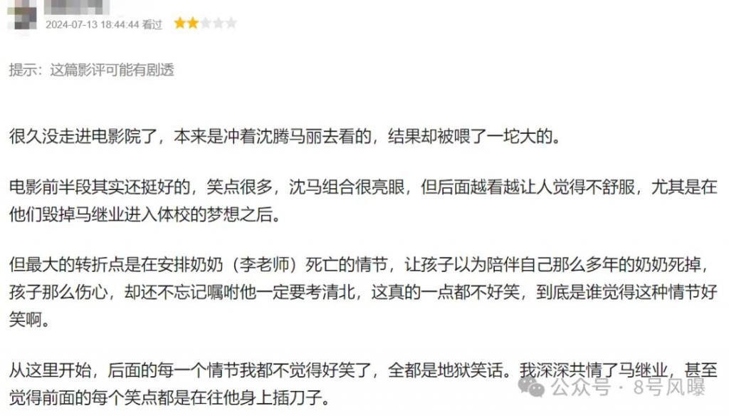 对于电影本身,有网友直言很一般,只是 " 沈马富豪夫妇大号养废了,装穷练小号 " 的故事。