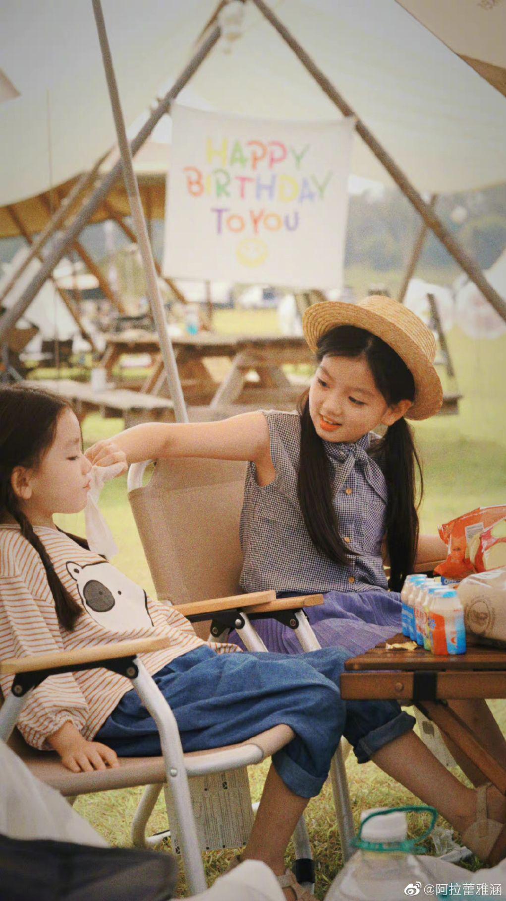 阿拉蕾庆祝 10 岁生日,乖巧长相等比例长大,贴心帮妹妹擦嘴好有爱