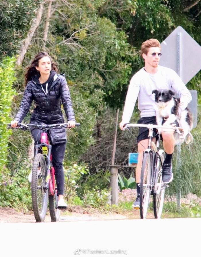当地时间3月22日,Nina Dobrev妮娜·杜波夫和新交往的男朋友Shaun White抱着狗子现身洛杉矶街头骑单车。