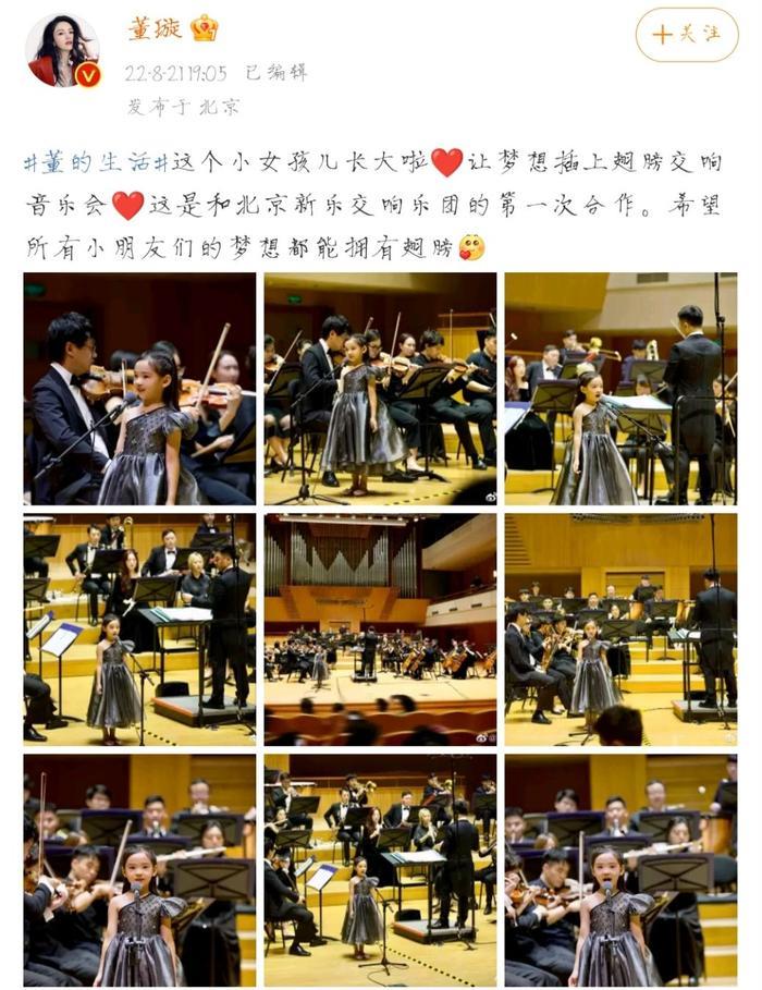 近日,董璇在个人社交平台上分享了一组女儿小酒窝的照片,小酒窝一个人站在舞台上独唱,并配文:这个小女孩儿长大啦。