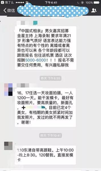 我曾有幸接过认识的朋友让我帮忙去房地产公司当房托的请求,就是装作看房、买房问价的人,要求一男一女扮夫妻,50元/半天,喝喝茶,多聊聊就走,还是很好赚的。当然这是前年的价了,不知道最近有没有涨。电视综艺情感节目,基本上说的都是相亲类节目吧,有关这样的嘉宾招聘群私下里很多,综艺嘛,要具有可观性,话题性,基本都是美女帅哥,不然收视率肯定没保障。以心论心,我也相过亲,咱们普通人私下的相亲都紧张,何况是到了电视台? 但是你看下电视节目里的嘉宾,淡定自若,说话头头是道,而且火药味十足,代表是2010年的浙江卫视的《非诚勿扰》,真是掀起了国内相亲综艺的收视狂潮。
