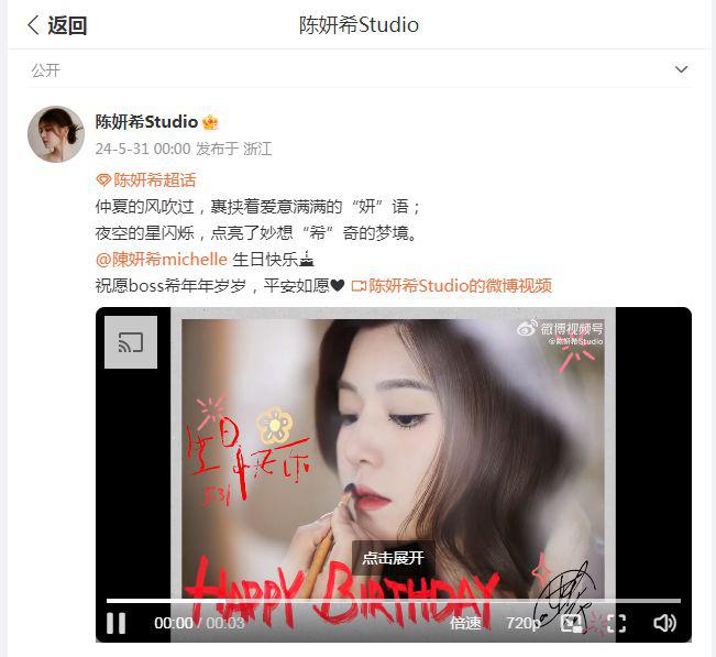 陈妍希工作室(陈妍希 Studio)不仅卡点送祝福,而且还用她的名字写了一首小诗,可以说是特别的用心,也是很有深意了。