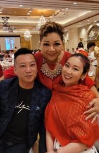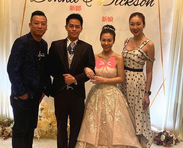 香港资深艺人庄思敏带着老公出现在婚礼现场,她身上披着一件红色围巾,非常喜庆。