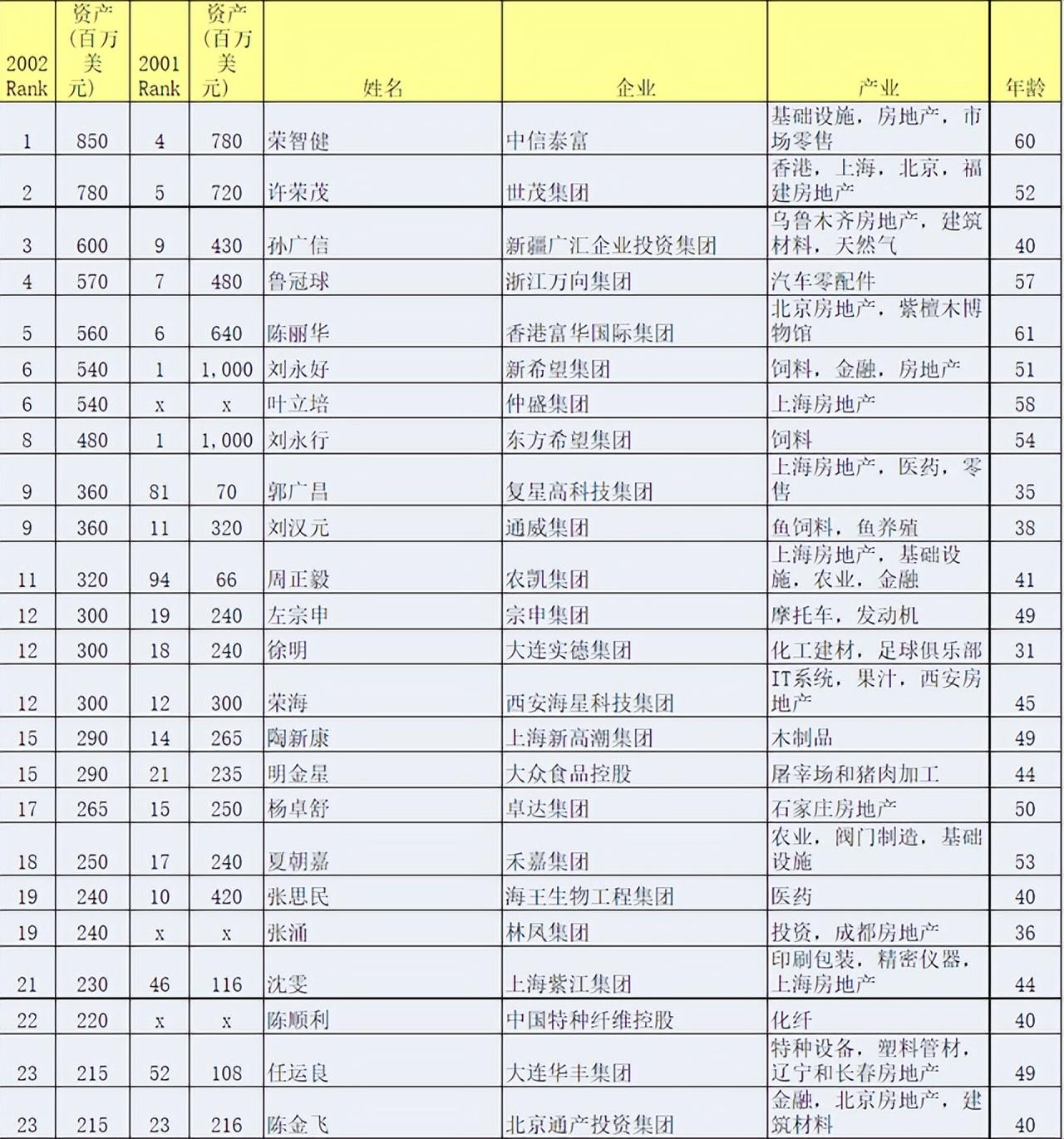 2002年,福布斯中国富豪榜单对外公布,陈金飞以2.15亿美元的资产上榜,名列第23位。
