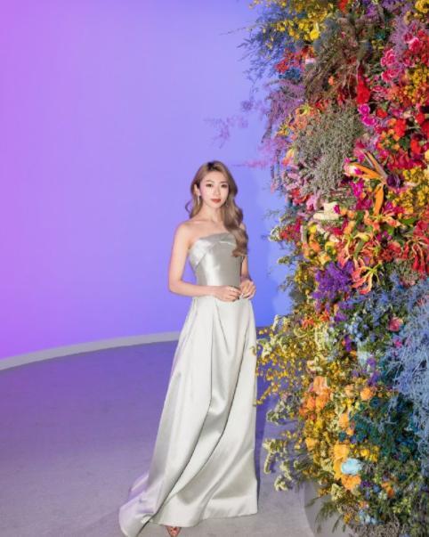 程晓玥气质出众,抹胸连衣裙的穿搭也让她的身材比例得到了明显的体现,这种银色抹胸连衣裙无论是色彩还是版型都很特别,银色的裙装搭配也能更好的修饰肤色,拖地裙摆也能够拉伸她的双腿,看上去身材比例很出挑。