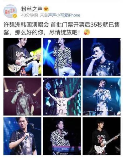 要知道很多演过耽美剧的男星,都很难转型,不过他和许巍洲也算发展的很不错得了,刚开始许巍洲要比黄景瑜圈粉火一些,许巍洲还在韩国开了演唱会,他在韩国人气很高,门票35秒就被抢光了。