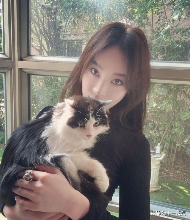 下面这张抱猫的照片,由于美颜的原因,导致完全不像袁姗姗本人。
