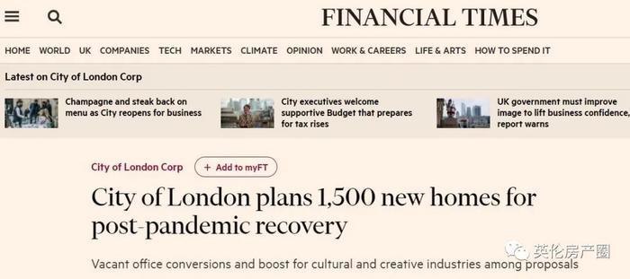 如今,在英国疫情已经好转之际,为了促进金融城尽快恢复活力,负责该区域建设的伦敦金融城公司(City of London Corporation)计划将一些商业办公室改造成数百套新的住宅。
