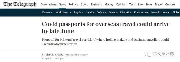 据《The Telegraph》报道,有望让英国人跨境前往美国、法国、意大利和德国旅行的“新冠护照(Covid Passport)”可能最早于6月28日前推出。